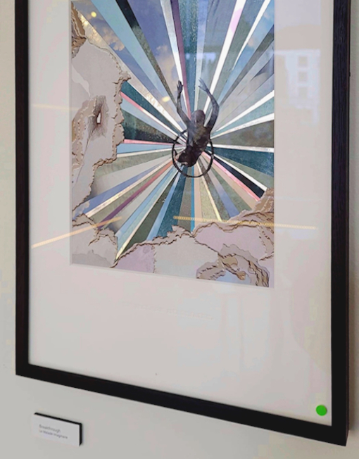Met deze loep glijdt de collagereeks over een gemankeerde sensitiviteit, een zoektocht naar empathie en het geluk aan het einde van de regenboog. Een plek waar het kleurrijke palet van het neurodiverse brein en niet de keerzijde ervan, in de spotlights staat. Een plek waar een innerlijke balans of een doorbraak mogelijks ligt.