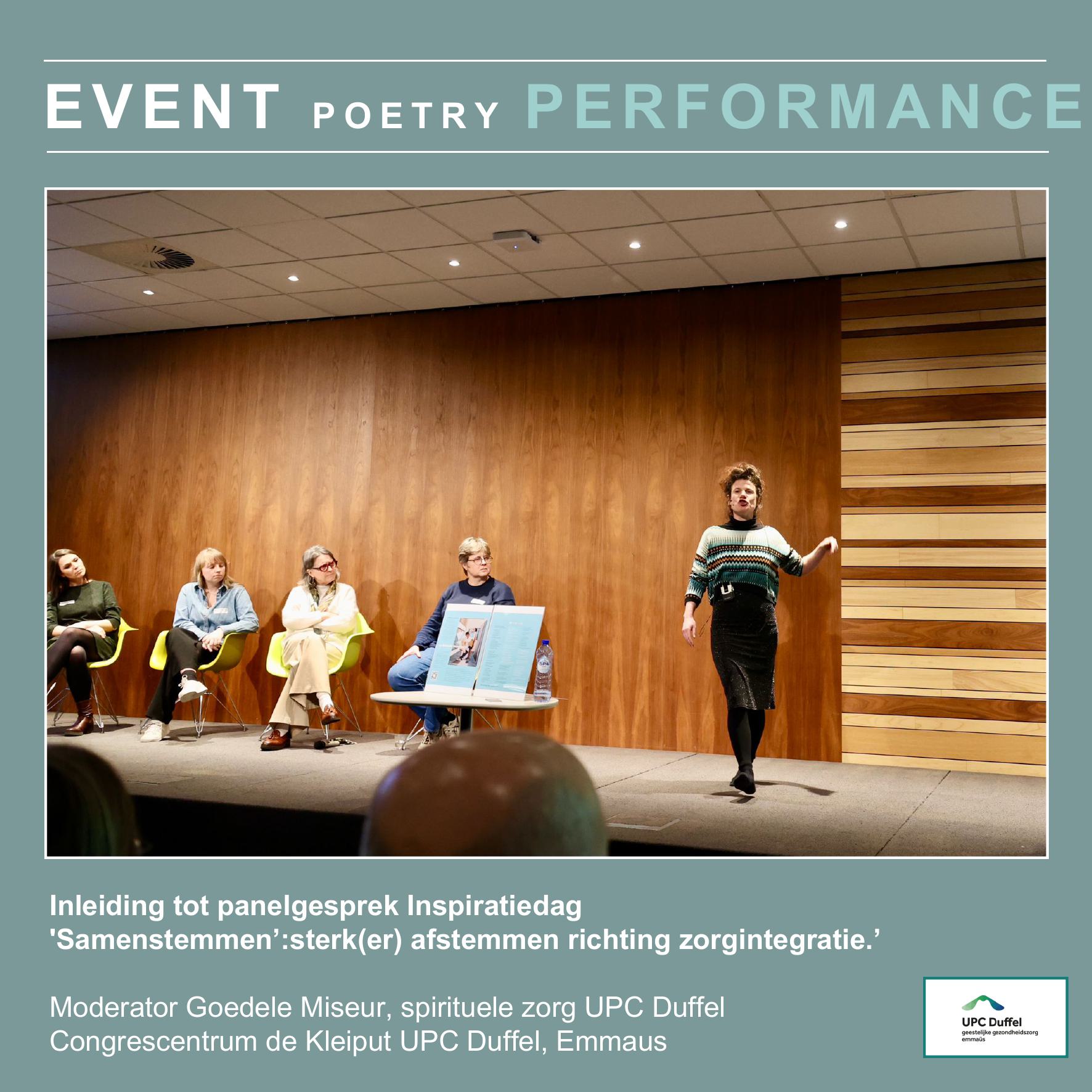 Slam Poetry op pöezieavonden, vernissages, congres- en inspiratiedagen is een krachtig intermezzo. Het prikkelt reguliere denkkaders en biedt nieuwe perspectieven. Complexe concepten worden ‘anders’ gekaderd en kunnen hierdoor veelzijdiger begrepen worden.