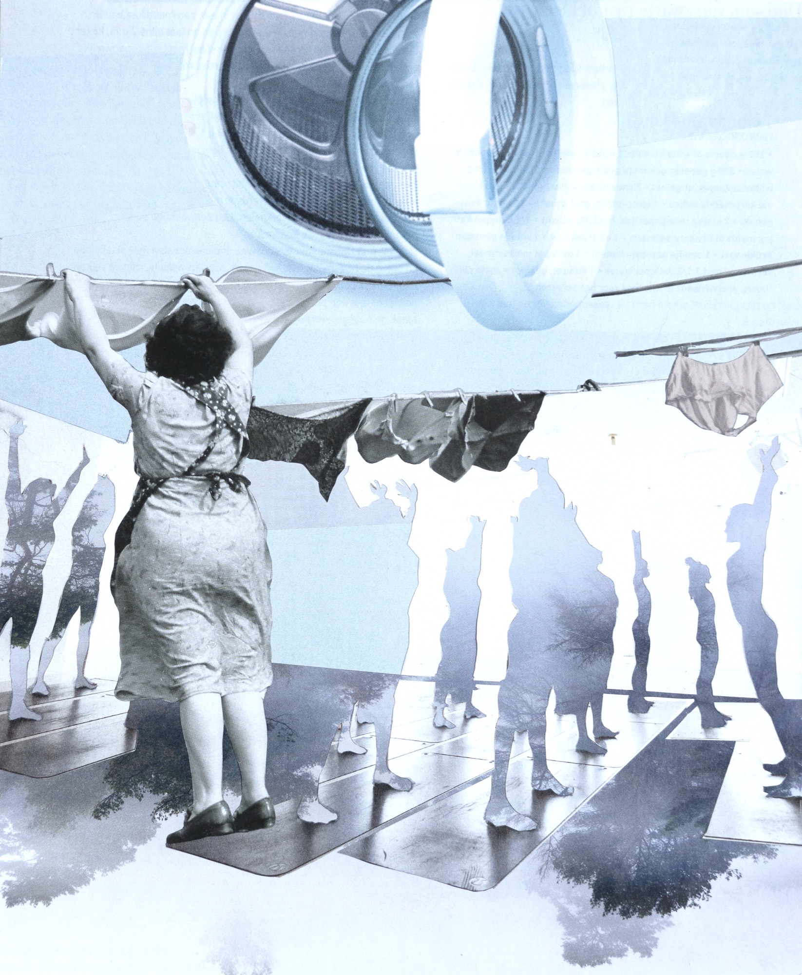 Als je de tijd neemt om een ‘probleem’ te observeren, zie je dat de druk om oplossingen te vinden voordat we het probleem echt snappen, toeneemt. Deze collage illustreert deze ‘spreid – of stretch - stand’. Om gezinsleven, huishouden, carrière en zelfzorg te combineren, creëert de welnessbusiness een nieuw probleem: namelijk tijd voor ontspanning. Omdat er met oplossingen meer geld te verdienen valt, dan met ‘minder’ doen.
