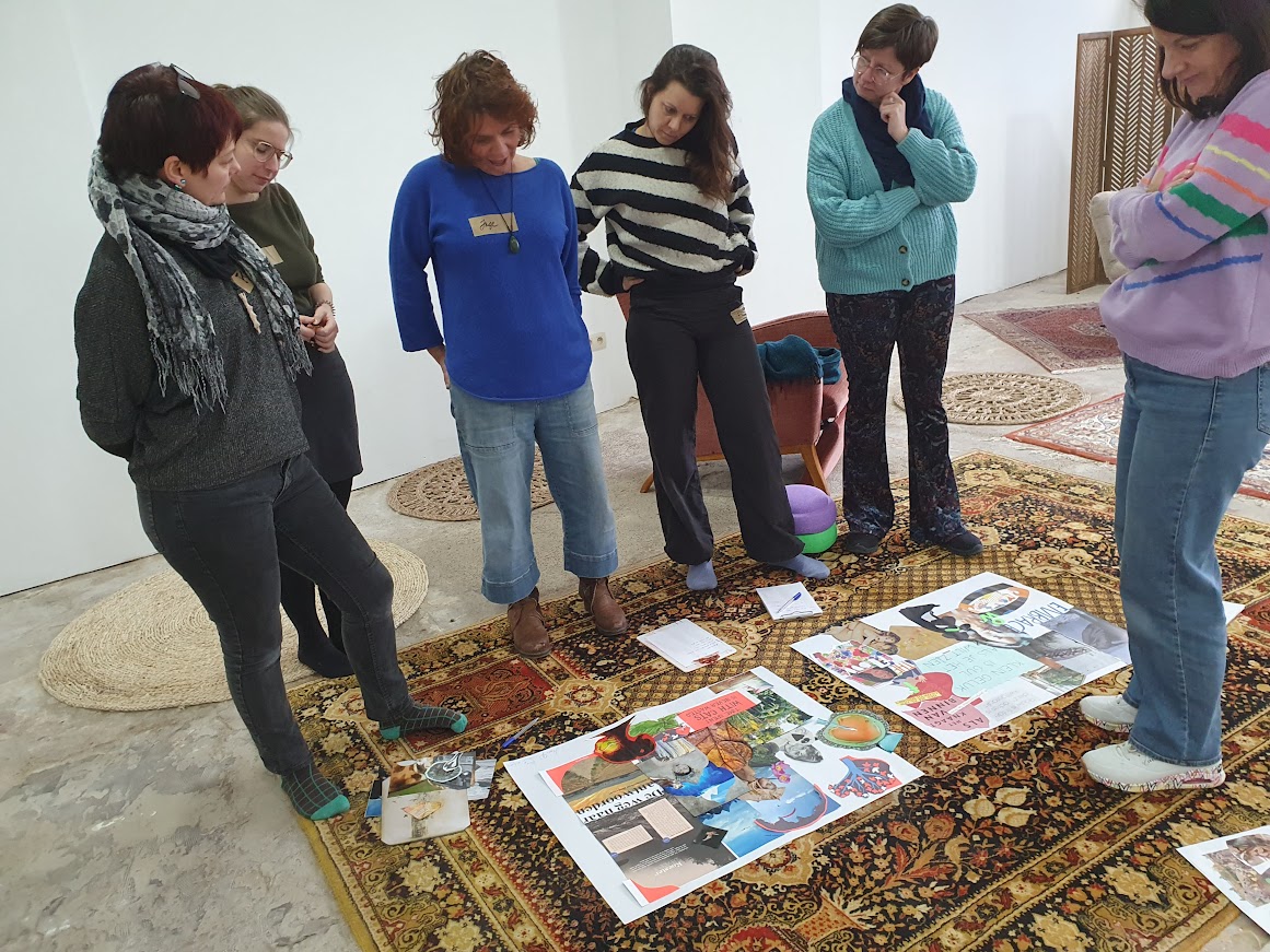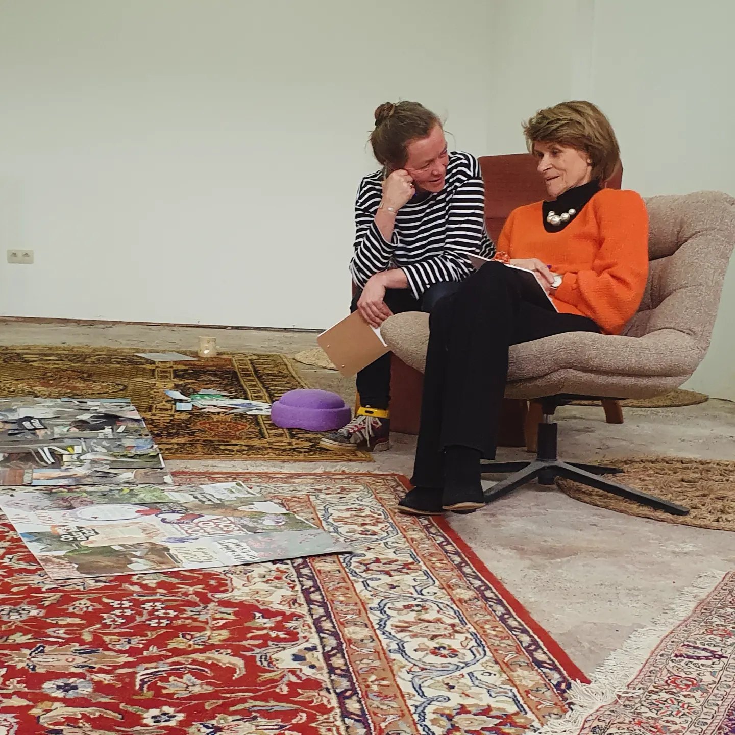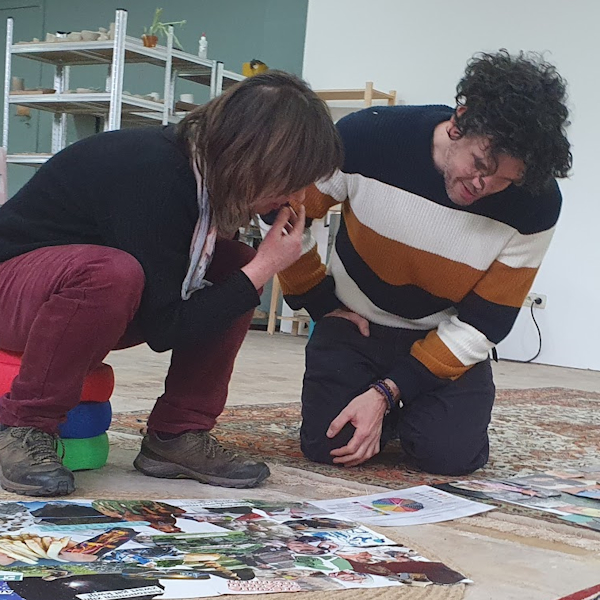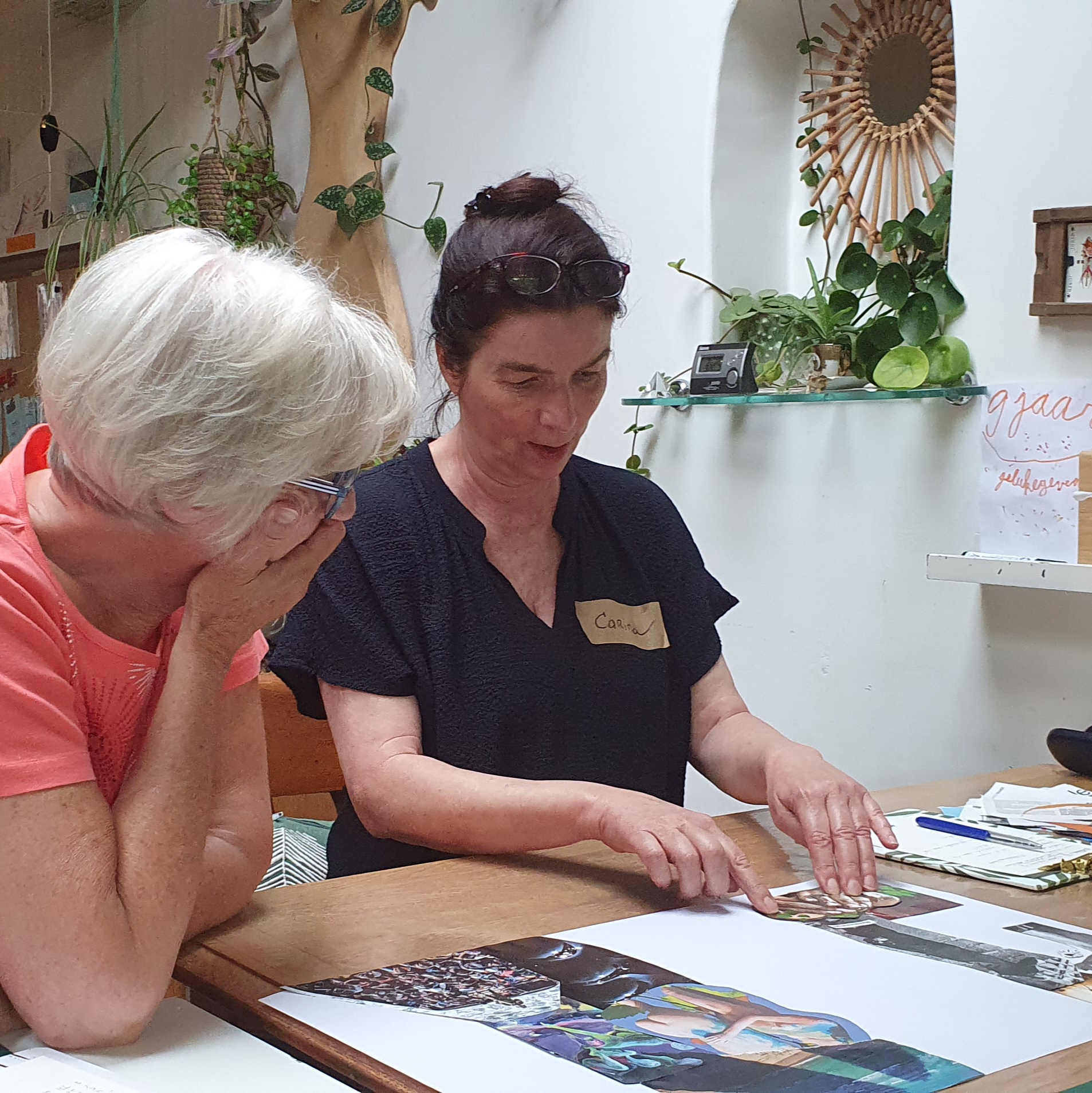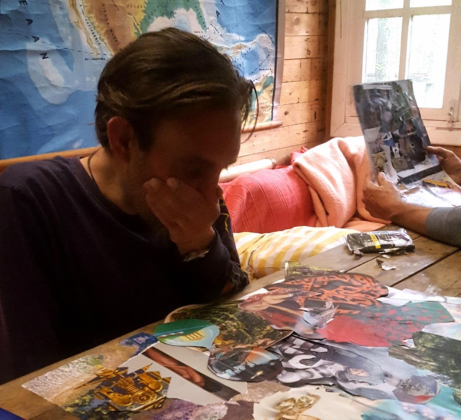 Heel wat mensen zijn bekend met het maken van een vision board: een collage die je ideale toekomst en je intenties verbeeldt. Dat is niet wat we hier doen. We komen los van tijd en onze ideale toekomst. We laten vooropgestelde plannen die we als 'succesvol' beschouwen los en duiken in een proces dat resulteert in een collage die we analyseren in het hier en nu met oog voor wat onder de oppervlakte beweegt.